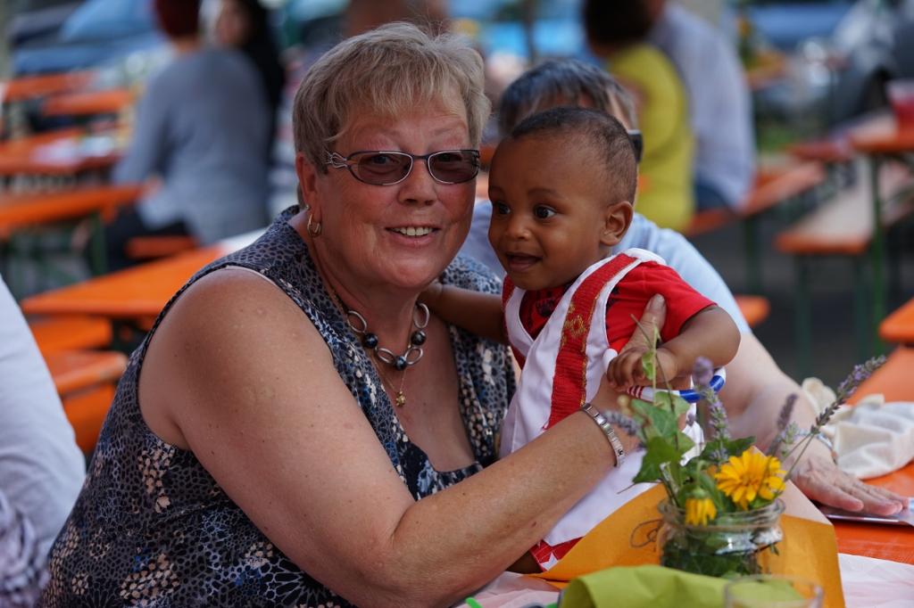Integration, die von Herzen kommt. Keine Barrieren, sondern Offenheit und Willkommenskultur führten am Griesheimer „Fest der Begegnung“ Jung und Alt aus aller Herren Länder zusammen – hier Katharina Kümmerlein vom Helferteam mit dem kleinen Elishama Ngusse aus Eritrea. (Foto: AKA/Angela Israel)